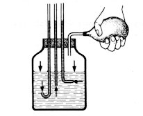 voda, 4 manometrické trubice, balónik