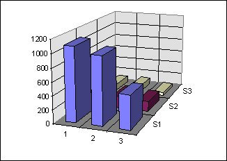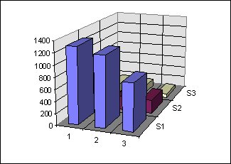 Podorys triedy (rovona X,Y) je sivy. V miestach 1,2,3 su okna. V smere osi Z su hodnoty osvetlenia v Lx - luxoch.